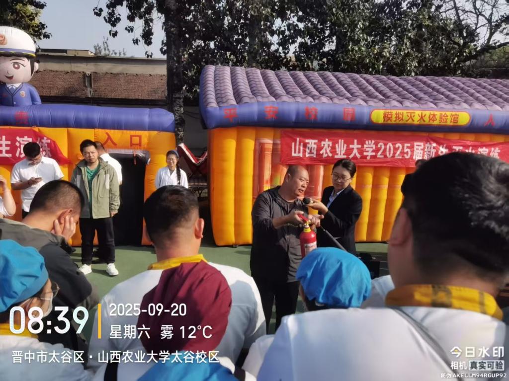 为了进一步加强学校消防安全工作,指导校园重点岗位工作人员和2025级新生掌握必备的消防安全技能,提升应急处突的能力。9月13日至20日,后勤保卫部在太谷校区大、小操场分别集中组织2025级新生以及学校负责公寓管理、物业服务、安全保卫、餐饮服务等校园重点岗位工作人员,逐人规范有序地开展消防灭火和逃生演练。