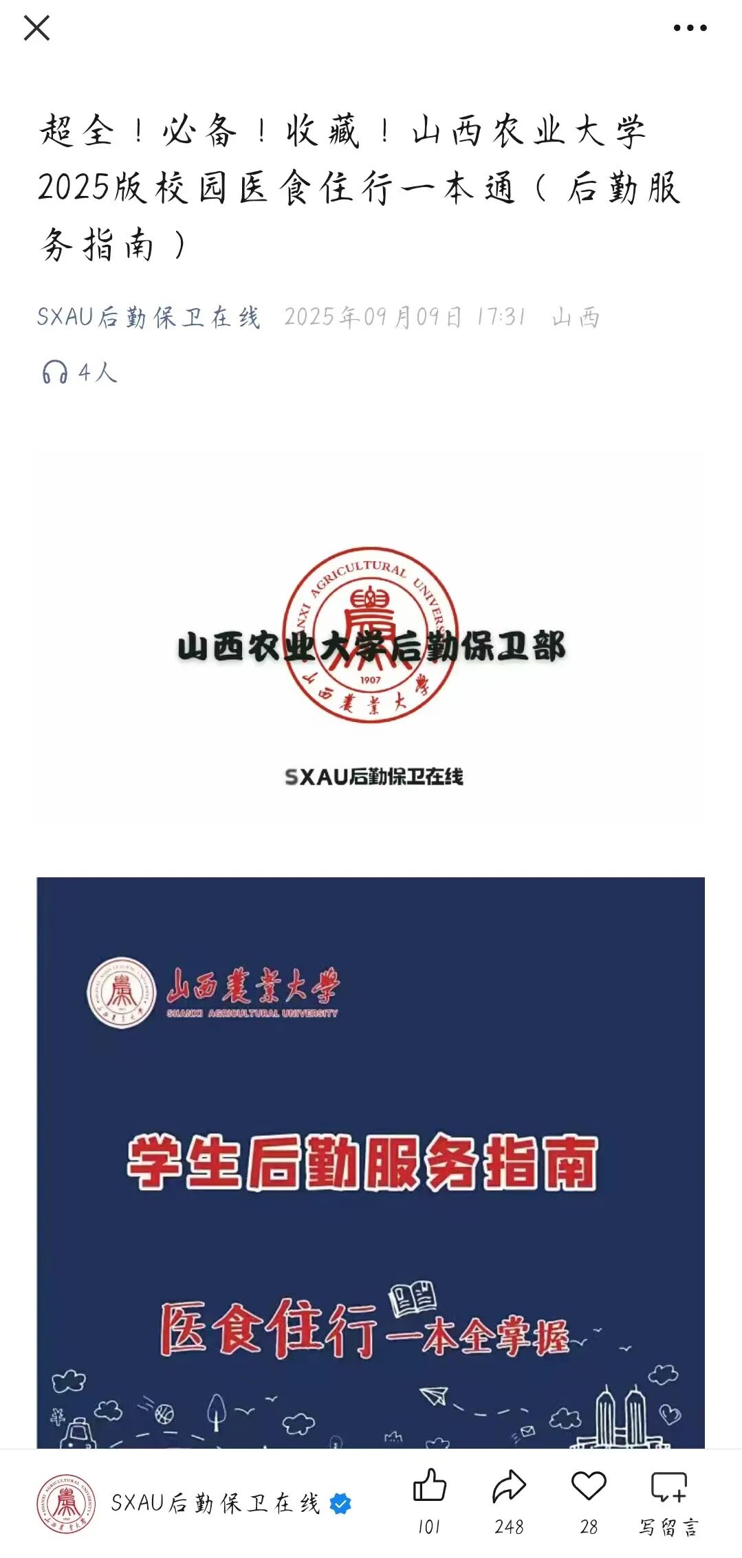 主动融入学校“三全育人”格局,强化服务育人、协同育人,为学校人才培养添砖加瓦。组织召开以“劳动美·致敬后勤人”为主题的首届校(院)后勤保卫工作会议,在全校营造礼赞后勤保卫一线工作者的浓厚氛围;成立“SXAU智慧后勤服务团”学生组织,引导学生深度参与学校治理;创建“SXAU后勤保卫在线”公众号,多维度展示后勤保卫风采;牵头建设两校区教学楼、公寓和餐厅等公共区域校园文化墙,开辟环境育人新阵地;常态化开展学校第三方服务企业述职测评、楼长接待日、师生见面会等活动,上线“SXAU智慧后勤AI咨询助手”、毕业季“闲余”线上市场等平台,推进线下后勤一站式服务中心建设,编制印发《学生后勤服务指南》,持续畅通沟通渠道,全校师生共同参与美好校园共享共建,全链条服务育人合力正在完善成型,后勤服务的问题清单逐渐成为校园生活的满意清单。