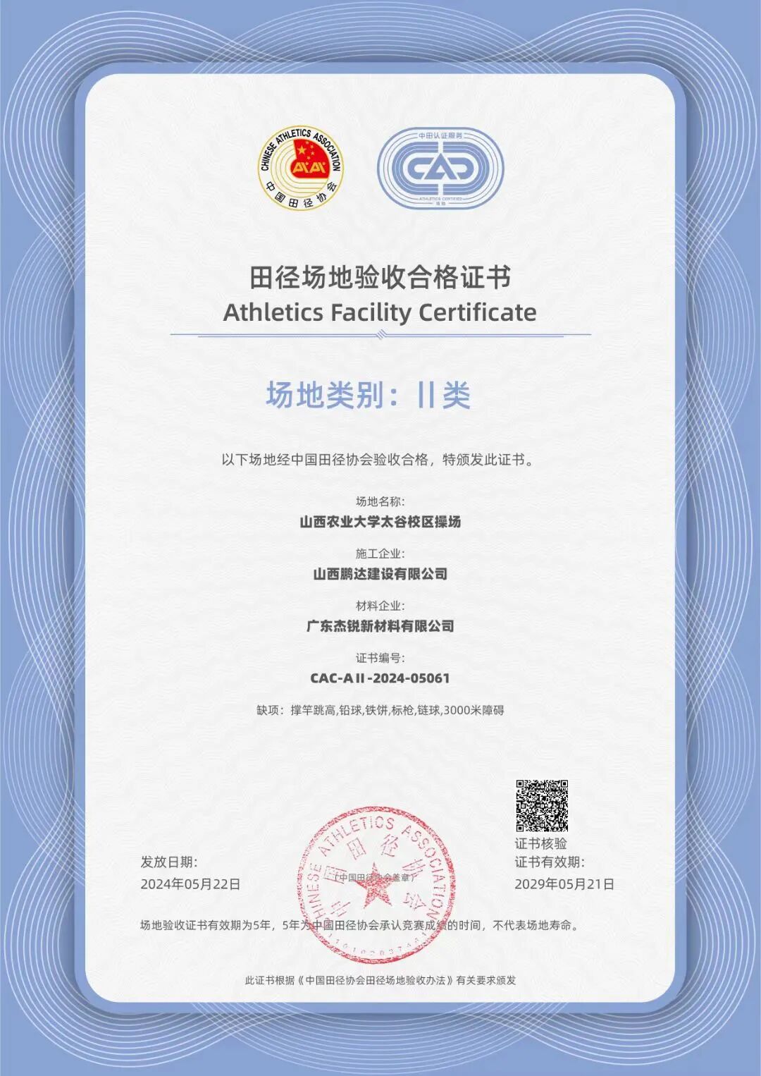 太谷校区操场荣获“国家Ⅱ类田径场地认证”