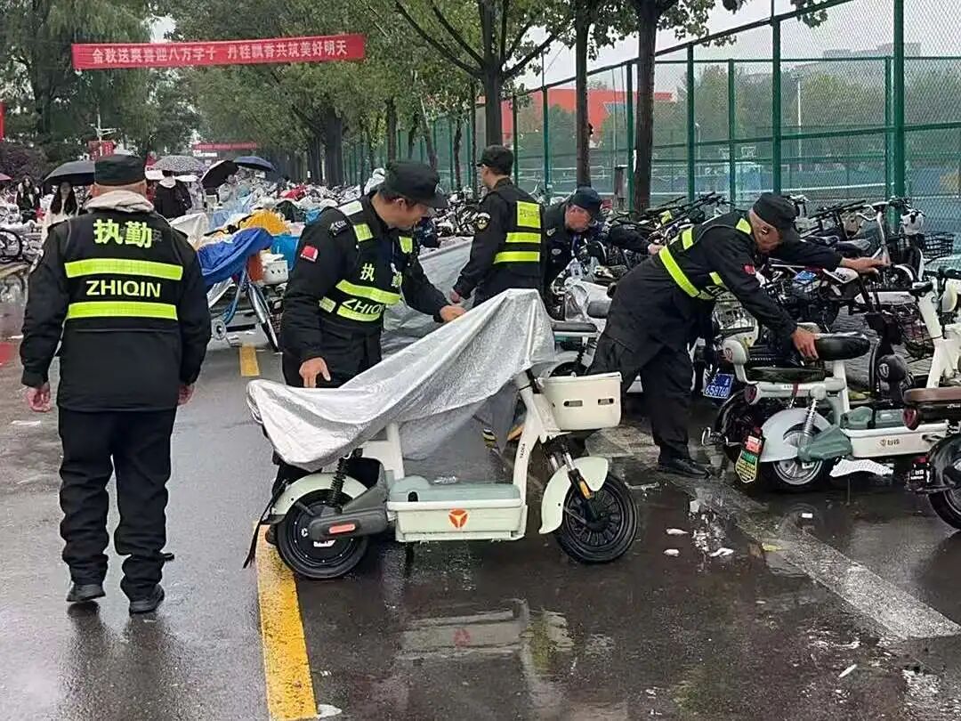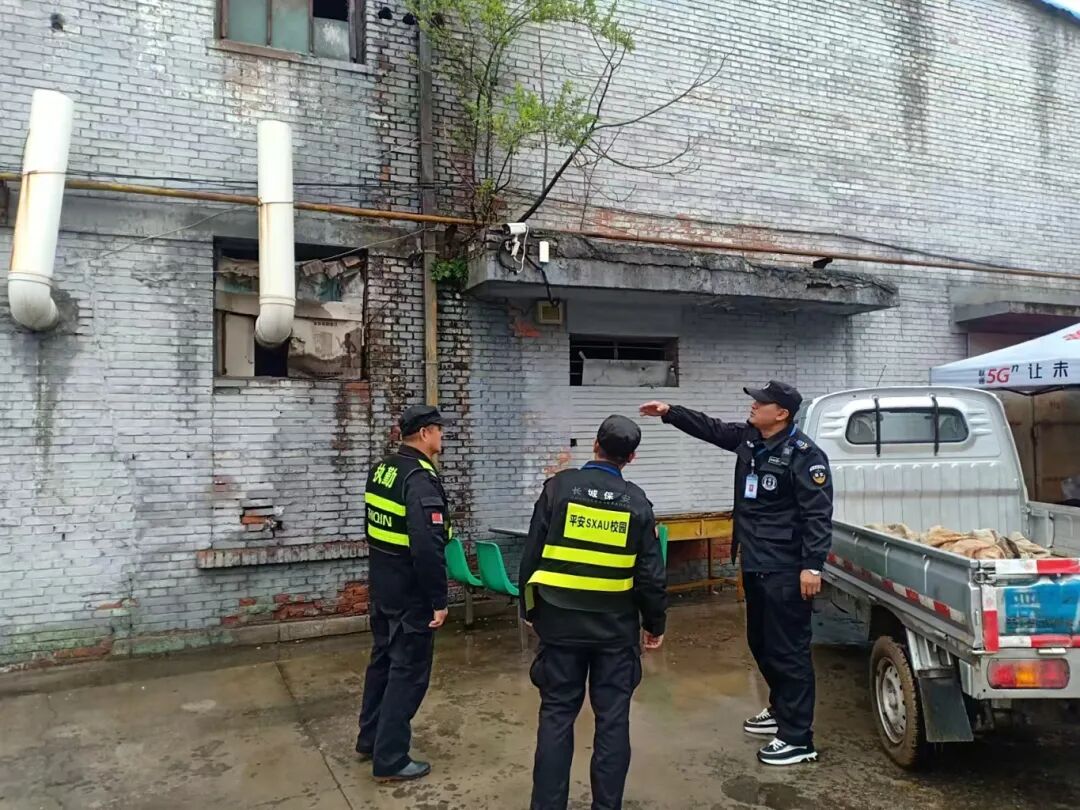 治安科加强了校园巡逻力度,加大了校园交通疏导力度,为师生开辟一条条安全的通行路线。风雨中,他们的身影更加醒目。