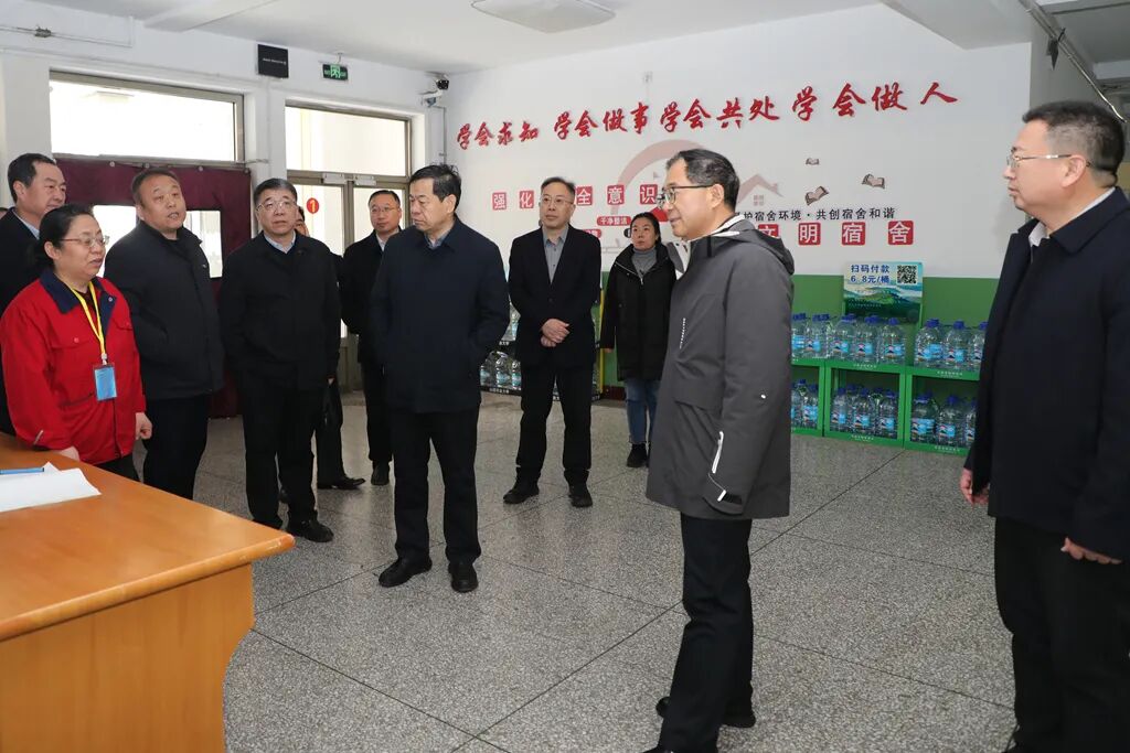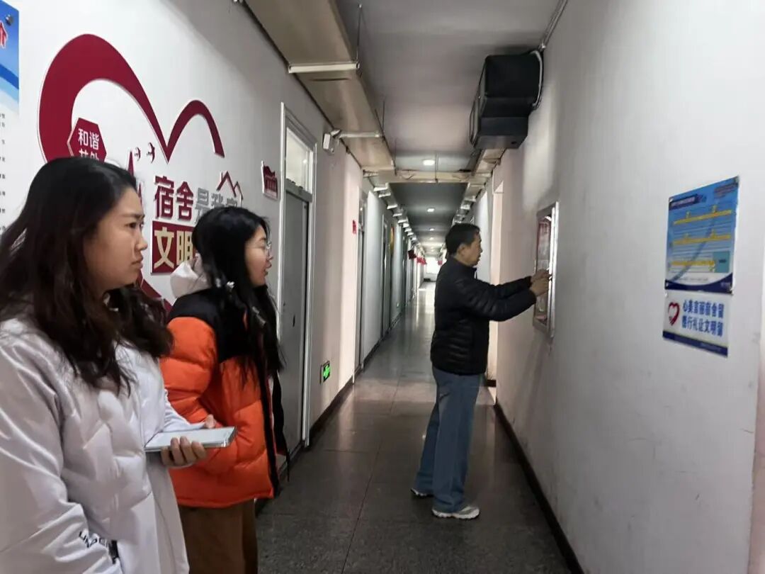 在勤学楼A座,调研检查多媒体教室准备情况,强调要保障教学设备正常运行,夯实开学教学基础;在怡膳园餐厅,调研检查食堂卫生情况,要求严守食品安全底线,提升餐饮服务质量;在9号学生公寓,调研检查学生住宿准备情况,要求做好宿舍环境整治与安全保障;在康馨苑,调研检查公共洗浴服务师生情况,强调要提升后勤服务品质;在校医院,调研检查应对开学药物准备情况,要求做好防控与健康宣传;在北校门,调研检查综合治理、校地共建、风险隐患排查及联防联控开展情况,要求筑牢校园安全防线。