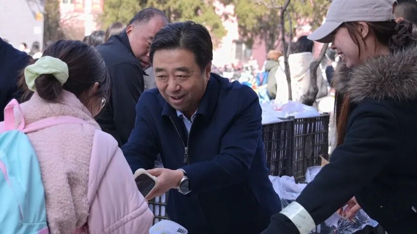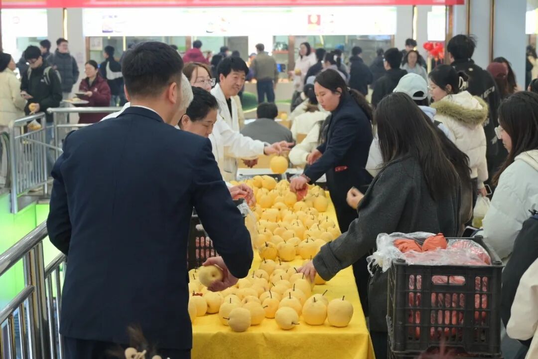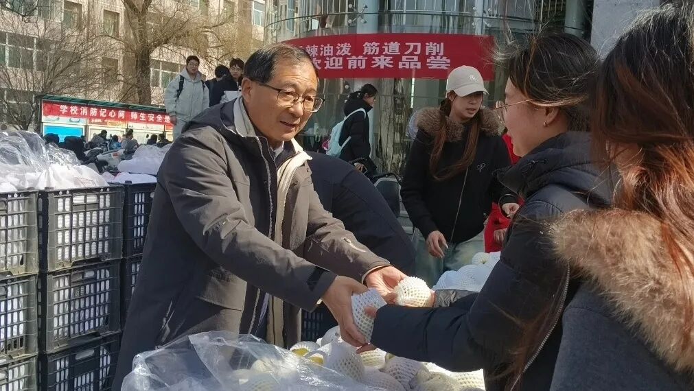 3月5日惊蛰时节,我校两校区各餐厅面向师生开展“惊蛰送梨”活动,共计发放一万余斤玉露香、酥梨,延续春日甜蜜。校党委书记廖允成,校党委常委、副校(院)长张富强亲临谷园餐厅集中发放现场,为同学们递上新鲜梨果,并送上亲切的问候,传递学校对每一位学子的牵挂与祝福。