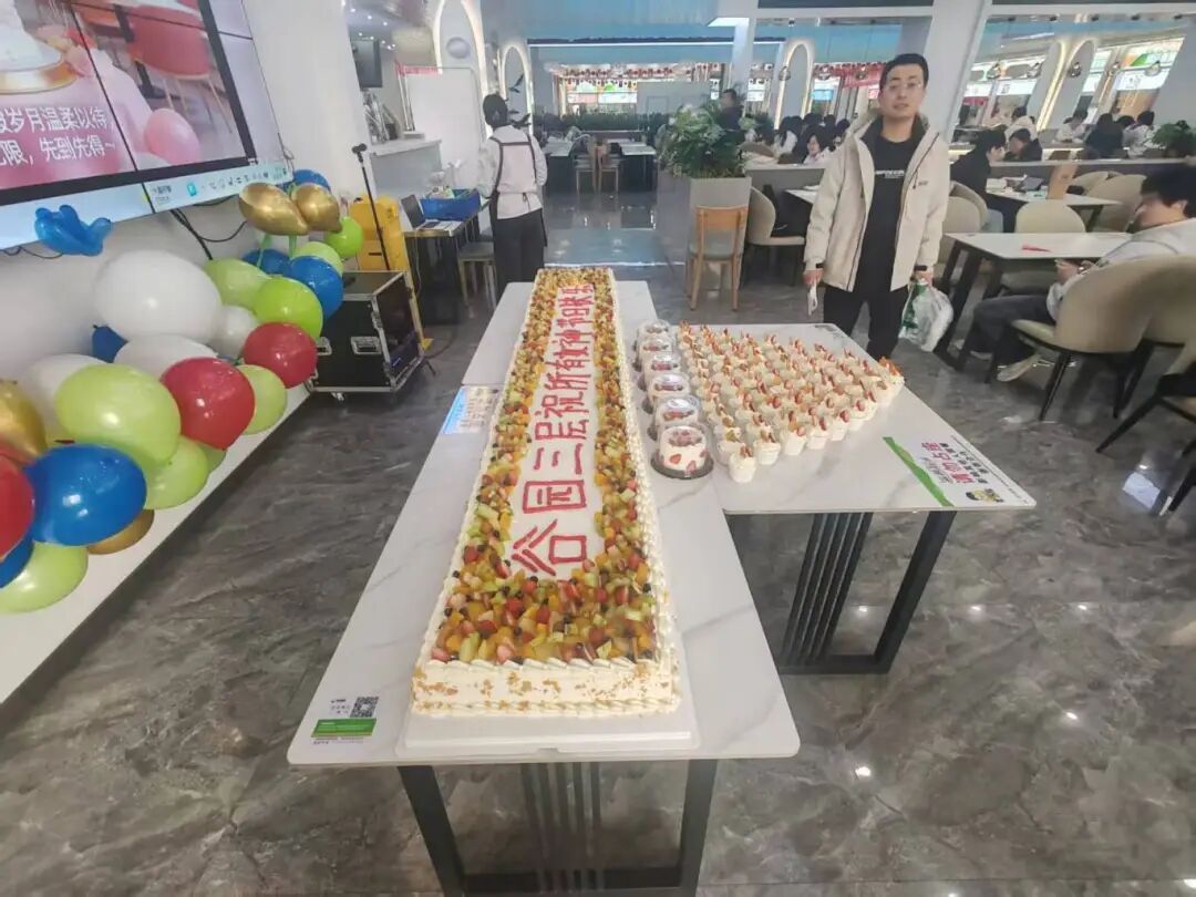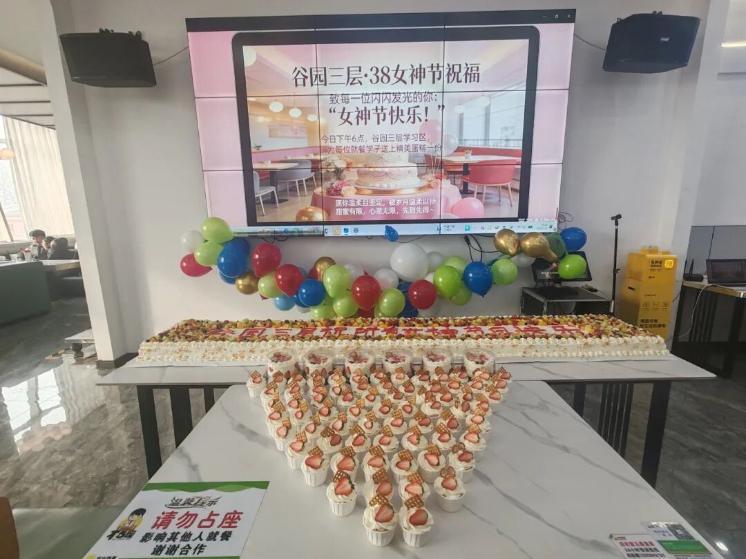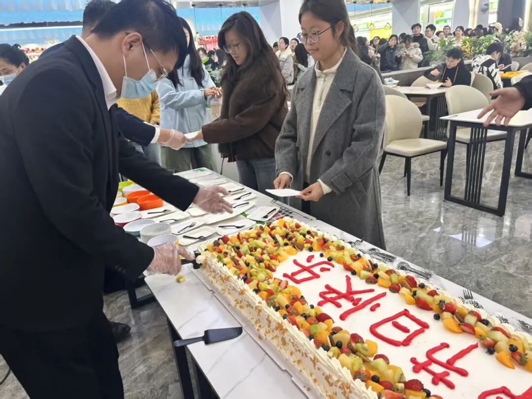 长2.4米的大蛋糕,承载着后勤人对全校女同胞最厚重的祝福。蛋糕的绵软,奶油的香甜,弥漫在整个餐厅,这一口甜蜜,是对辛勤耕耘的赞美,这一场相聚,是对“她力量”的最高致敬。