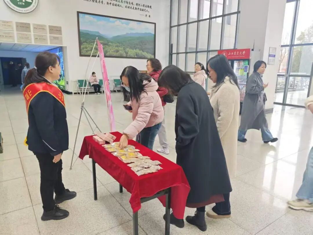 每一位走进楼内的女同胞,都收到了这份贴心问候。一支支护手霜,抚平平日里握粉笔、敲键盘的辛劳;一杯杯花茶,氤氲着后勤人最朴素的祝福。