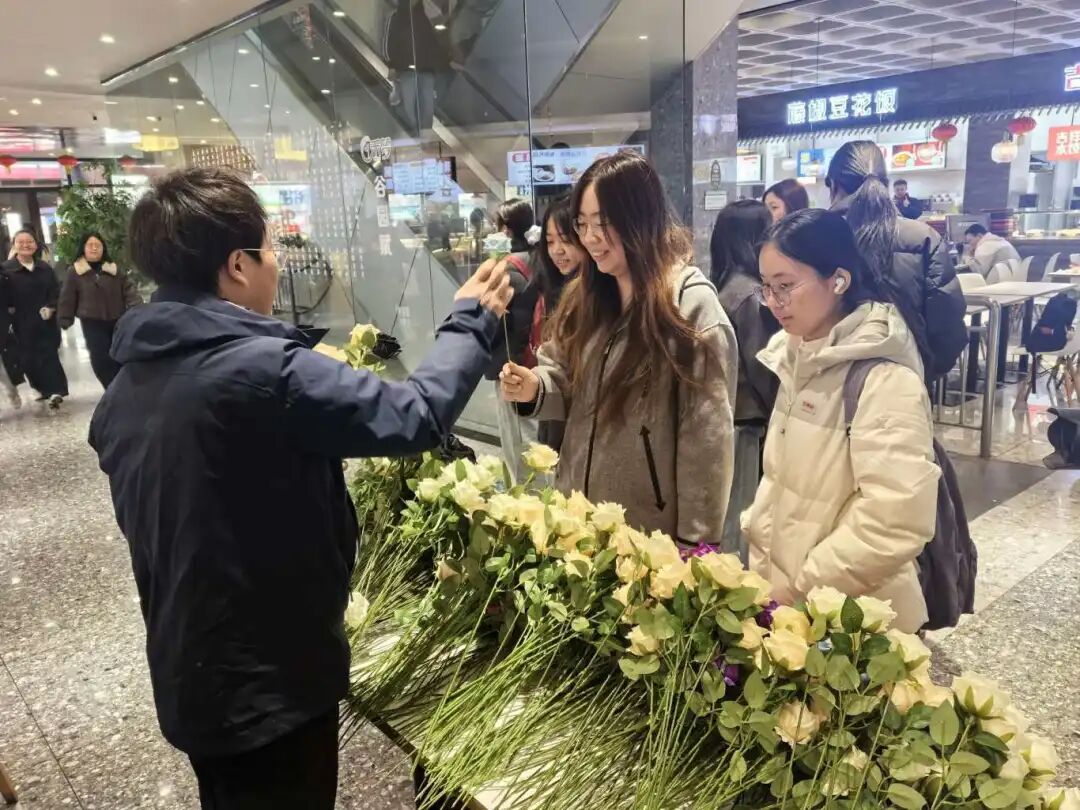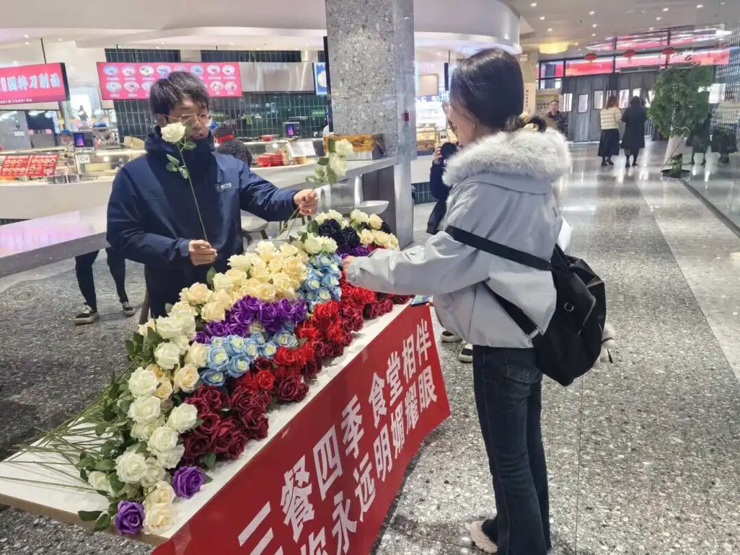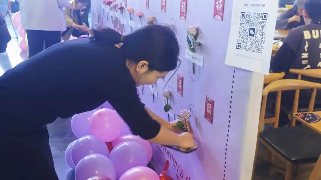 一朵朵娇艳的鲜花,传送到每一位进入餐厅的女同胞手中。没有复杂的流程,没有刻意的安排,只有一声真诚的问候——“节日快乐”。