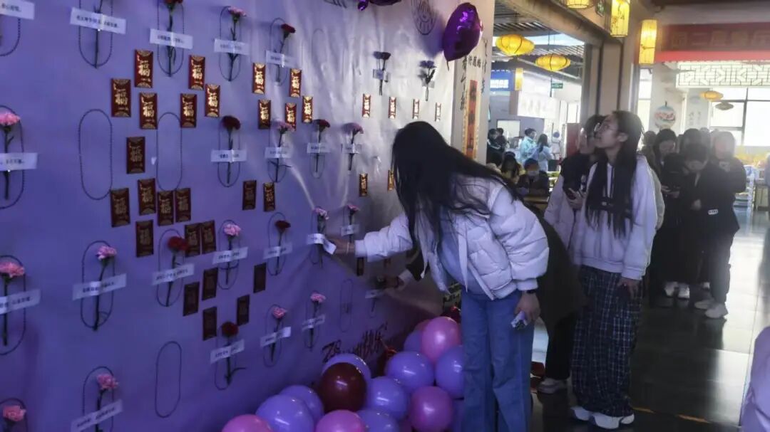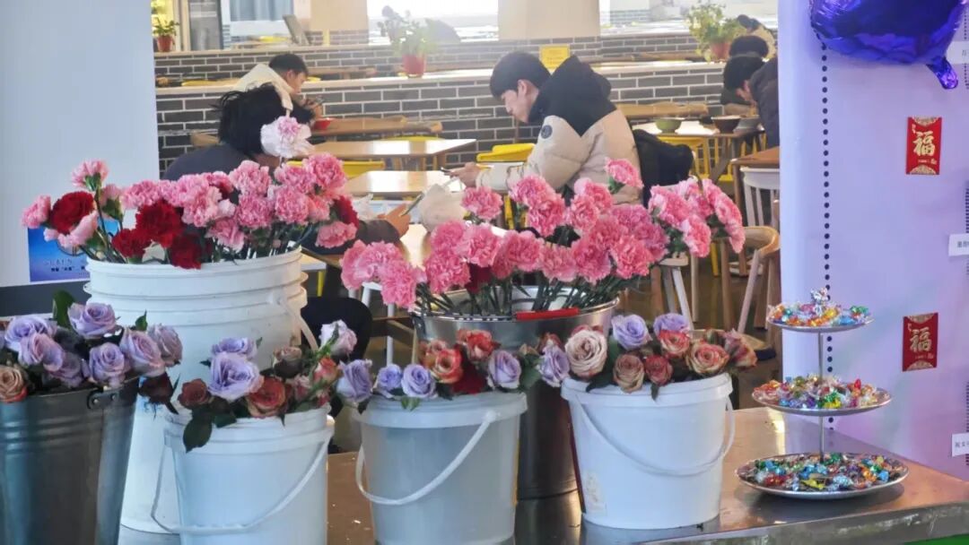 “鲜花墙”前,大家纷纷驻足拍照,定格这美好时刻。一个个红包,藏着小小的惊喜,更装着大大的心意。