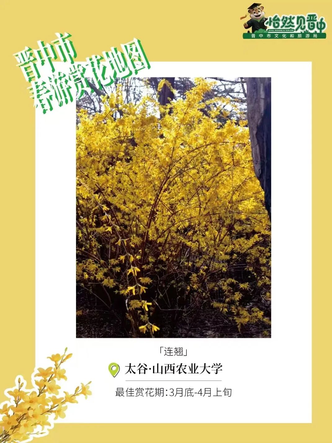 近日,“晋中文旅”视频号发布《晋中市春游赏花图鉴》,山西农业大学太谷校区成功入选春日赏花重要一站。风传春讯,草木知时,明天(3月20日)将迎来春分节气,昼夜平分、寒暑平衡,天气也像被按下了“温柔键”。此刻的校园里,枝头悄然冒出新绿,花朵开始吐露清香——农大的春色,正在持续加载......