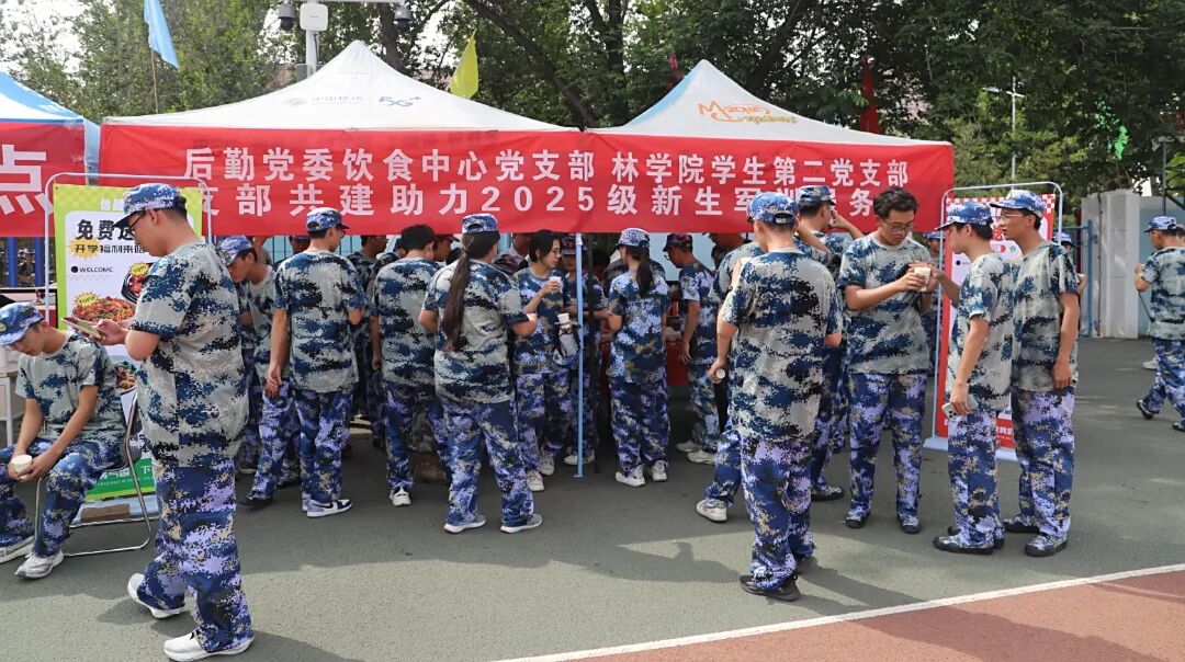 为期15天的2025级新生军训刚刚落下帷幕,全体新生褪去青涩、满载成长,以昂扬姿态告别迷彩时光。这期间,饮食中心党支部联合林学院学生第二党支部,在太谷校区大、小操场军训场地持续开展了“温情暖军训 健康伴成长”主题党日活动。以支部结对共建为纽带,将党组织关怀转化为服务新生的实际行动。作为党支部“党建+服务育人”的传统品牌活动,此项服务已连续多年开展,始终聚焦新生军训期间实际需求,切实传递了党支部对2025级新生的关心关爱。