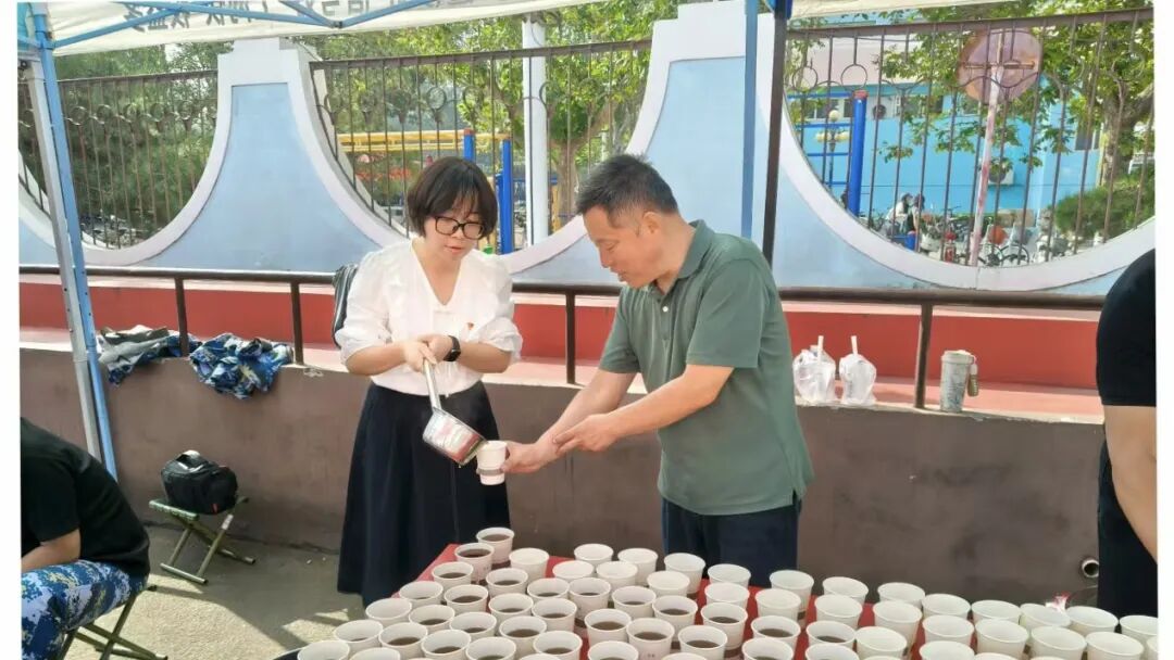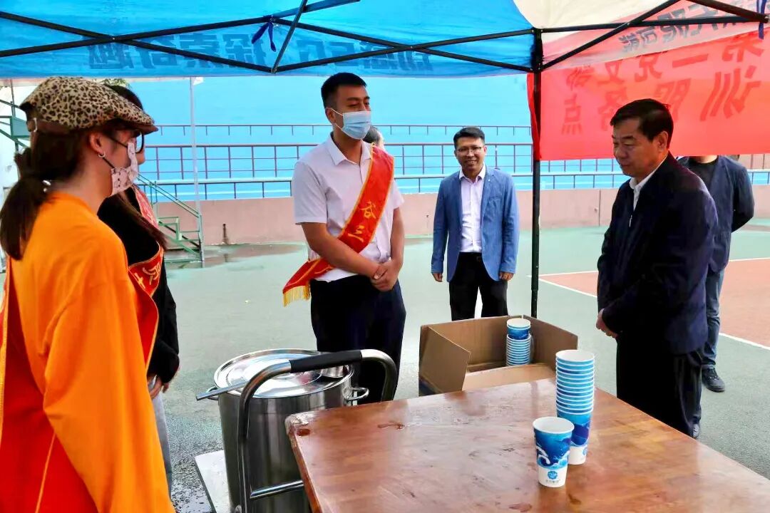 军训期间,校长张强老师亲临服务点慰问一线工作人员,细致询问“汤是不是热的?”“学生喝得多不多?”“汤品供应够不够?”等问题,并对支部联建的暖心服务给予高度评价。