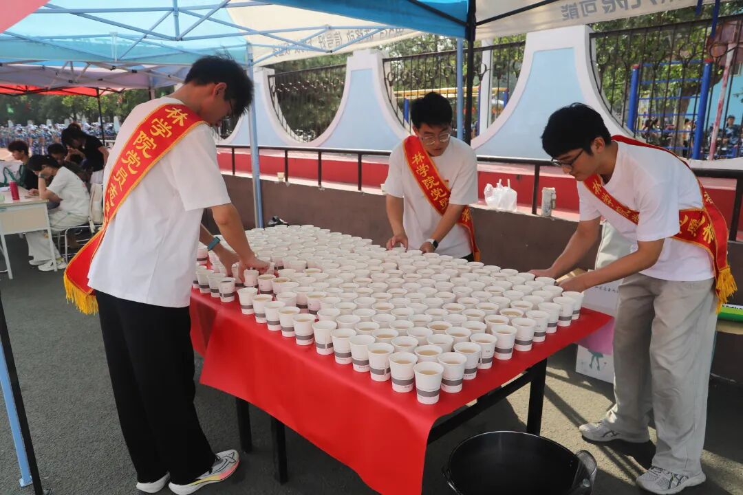 活动期间,两支部精准对接服务时段(每日 9:30-11:00、15:30-17:00):饮食中心党支部精心准备酸梅汤、绿豆汤、菊花茶等兼具解暑降温与营养补充功效的汤品,严格把控食材质量、汤品温度与供应总量,确保新生随时能喝到 “放心汤、暖心汤”;林学院学生第二党支部组建志愿者服务团队,分工协作、高效配合,从汤品转运、有序分发到现场引导,全程展现党员担当,保障服务现场秩序井然、氛围温馨,让新生在细节中感受党组织的温暖。