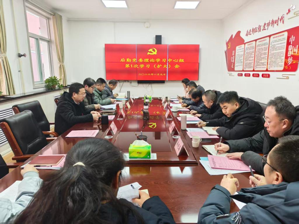 1月9日上午,后勤党委组织召开2026年理论学习中心组第一次学习(扩大)会暨2025年度党支部书记抓基层党建工作述职评议会。后勤党委理论学习中心组成员,后勤党委各党支部书记、副书记、委员参加会议。会议由后勤党委书记、后勤保卫部部长陈斌主持。