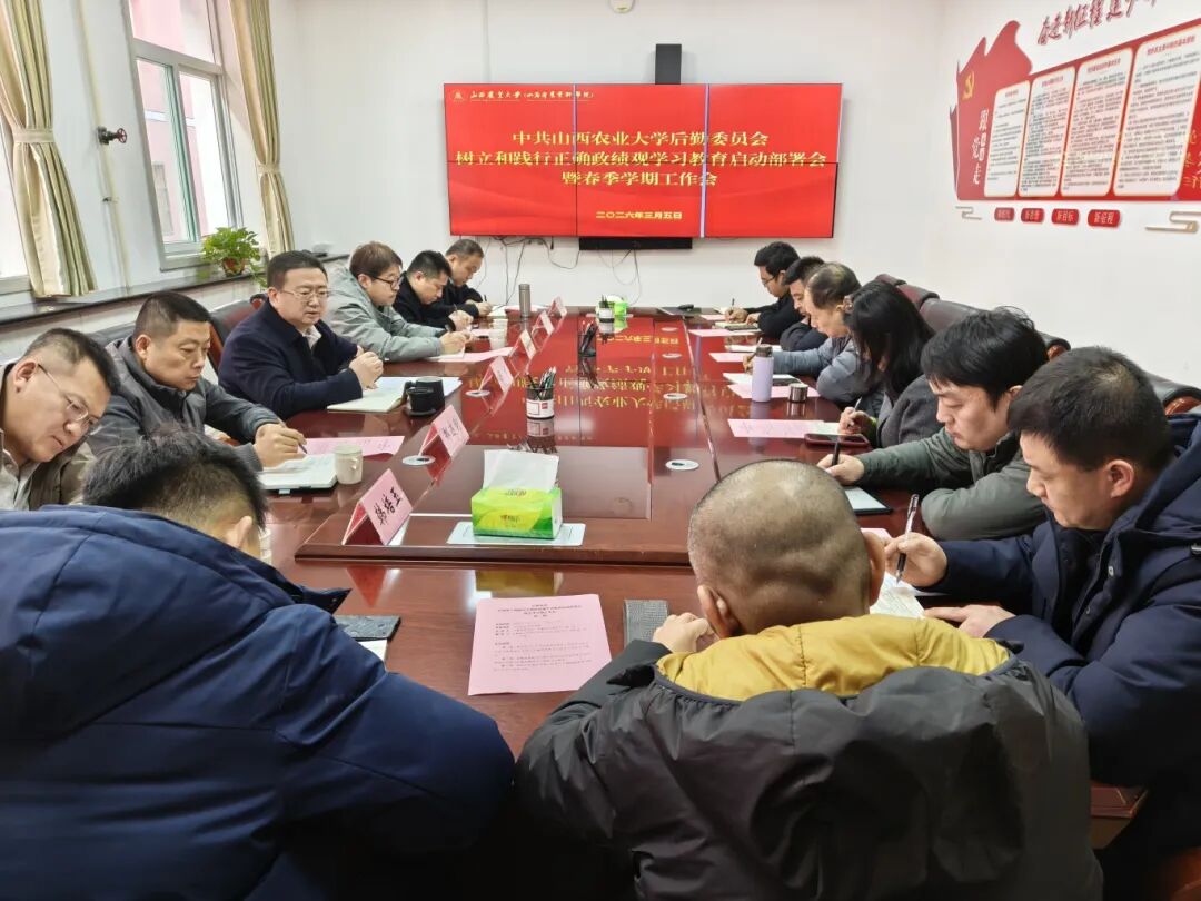 3月5日上午,后勤党委在太谷校区会议室召开树立和践行正确政绩观学习教育启动部署会暨春季学期工作会,深入学习贯彻习近平总书记关于树立和践行正确政绩观学习教育的重要讲话和重要指示精神,传达学习中央和省委、校党委部署开展树立和践行正确政绩观学习教育有关会议精神,启动部署后勤党委学习教育工作。后勤党委书记、后勤保卫部部长陈斌主持会议并讲话,后勤保卫部班子成员、各党支部书记、各科室(中心)负责人参加会议。